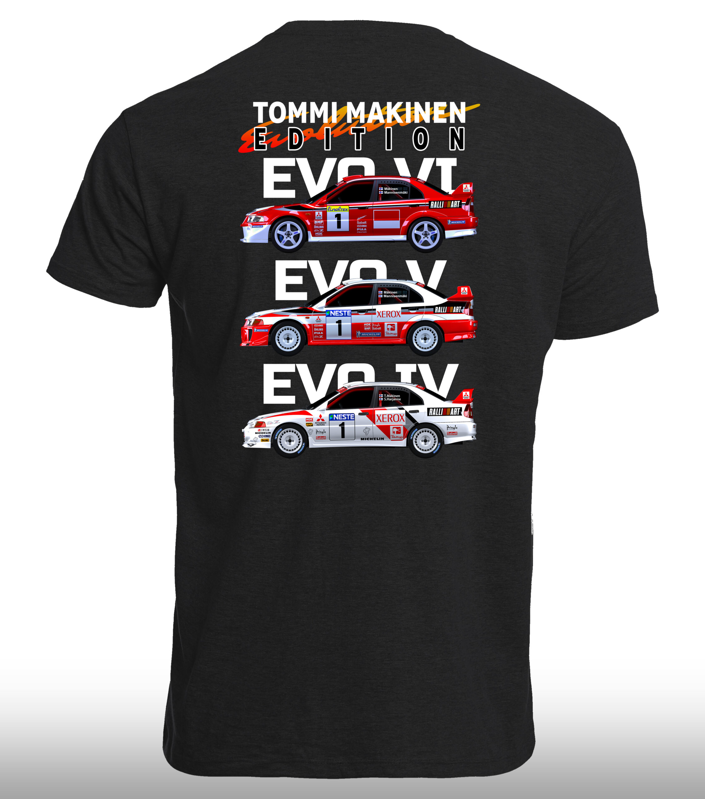 The official Dragon Eyez – Tommi Makinen Edition (WRC Legend) t-shirt in black is here! Tommi Makinen is undoubtedly the most iconic rally driver for Mitsubishi and the 2001 Mitsubishi Lancer Evolution VI Tommi Makinen Edition is by far the most sought after Evo ever. Get your Tommi Makinen Edition t-shirt and rep the Evo Rally Legend!!